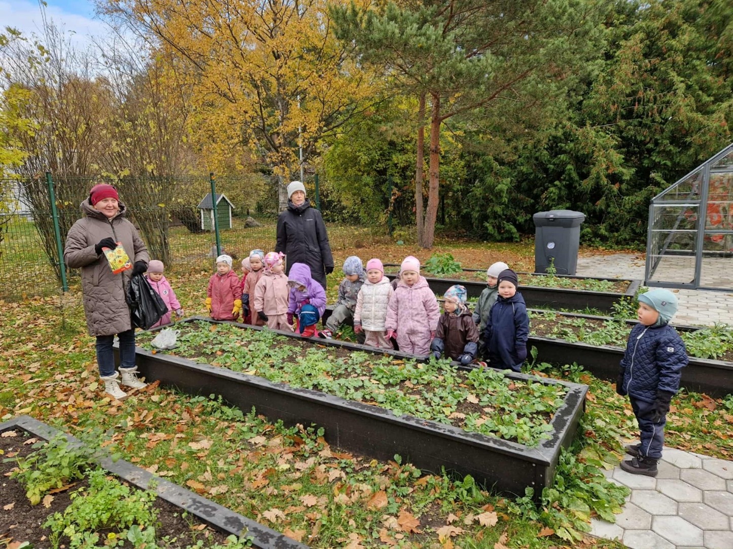 Tänavune sügis on olnud ilus ja soe — puulehed muutuvad aina värvilisemaks. 22.oktoobril said Naerulinnud veel aias toimetada. Istutasime peenrakasti...